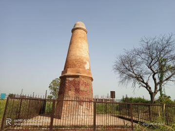 This Kos Minar is located at Gudhpuri (Miranpur) in tehsil Palwal, District Palwal. In 1619 CE, emperor Jahangir ordered Baqir Khan, the Fauzdar of Multan, to erect a kos-minar (mile-stone) at every kos (3.20 km) on the old imperial route. Kos -minars are brick structures standing on square platform covered with plaster. Each minar soars from a tapering octagonal base which is separated from the upper circular portion by a moulding. During the Mughal time, the Kos Minars were important landmark of the imperial route and travel.