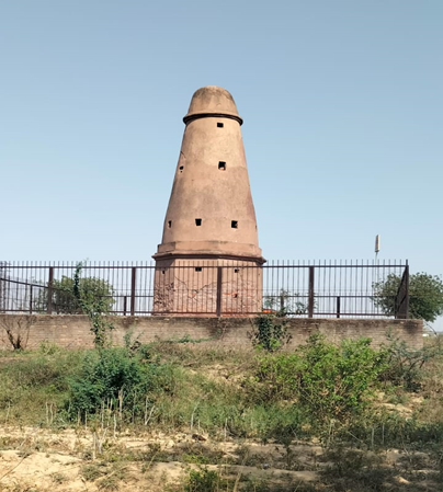This Kos Minar is located at Aurangabad in tehsil Palwal, District Palwal. In 1619 CE, emperor Jahangir ordered Baqir Khan, the Fauzdar of Multan, to erect a kos-minar (mile-stone) at every kos (3.20 km) on the old imperial route. Kos -minars are brick structures standing on square platform covered with plaster. Each minar soars from a tapering octagonal base which is separated from the upper circular portion by a moulding. During the Mughal time, the Kos Minars were important landmark of the imperial route and travel.