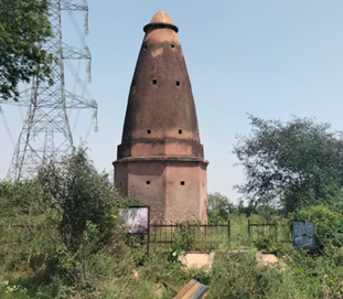 This Kos Minar is located at Bhulwana in tehsil Hodal, District Palwal. In 1619 CE, emperor Jahangir ordered Baqir Khan, the Fauzdar of Multan, to erect a kos-minar (mile-stone) at every kos (3.20 km) on the old imperial route. Kos -minars are brick structures standing on square platform covered with plaster. Each minar soars from a tapering octagonal base which is separated from the upper circular portion by a moulding. During the Mughal time, the Kos Minars were important landmark of the imperial route and travel.